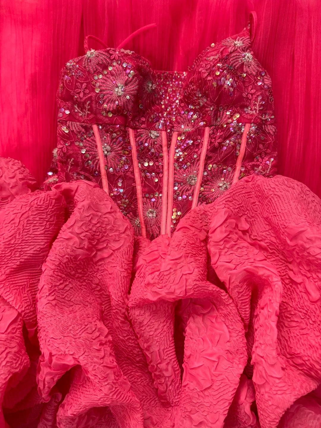 If your desired dress has a lot of delicate beads or other craftsmanship, it will take longer to make, as such intricate craftsmanship requires our experienced craftsmen to hand-sew one bead at a time. To ensure your ball goes smoothly, we recommend that you purchase your dress in advance.