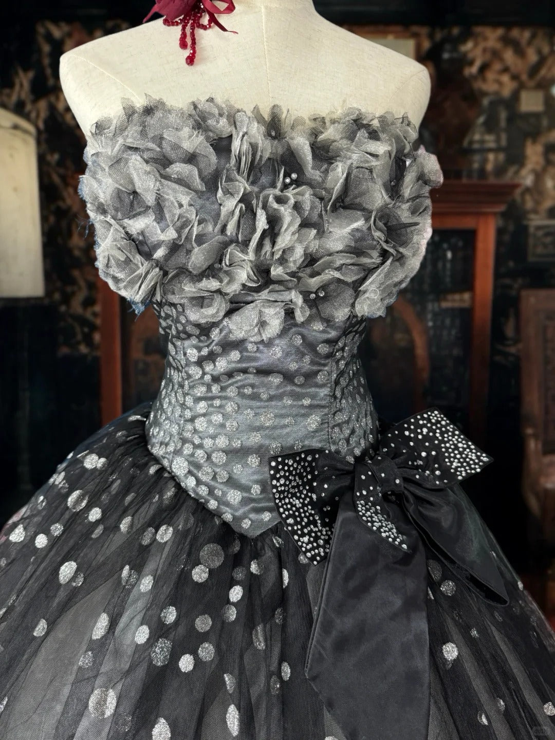 Girlhomeshops-Gray Sparkling Polka Dot Long Tulle Ball Gown gh5350