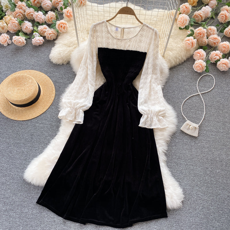 Lovely stitching long sleeve dress 440