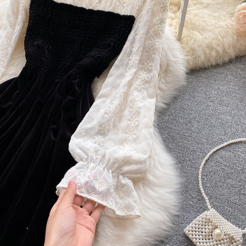 Lovely stitching long sleeve dress