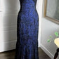 Navy Blue Shiny Elegant Exquisite Beaded Applique Straps Long Tulle Sequins Ball Gown Evening Dress Party Dress gh3189