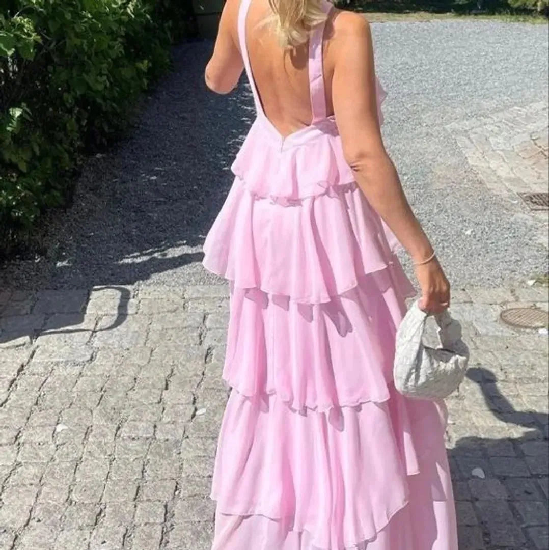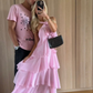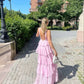Pink suspenders fashion sweet A-line backless long chiffon tiered ball gown evening dress party dress gh2906
