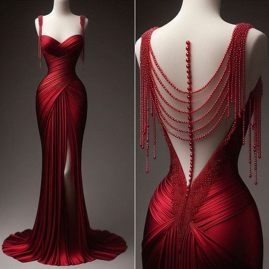 Girlhomeshops-Red beaded dress sexy elegant dress prom dresses party dress satin gh5143