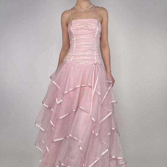 Girlhomeshops-$169.00 Pink multi-layered fashionable and elegant long tulle ball gown evening dress graduation dress gh5142