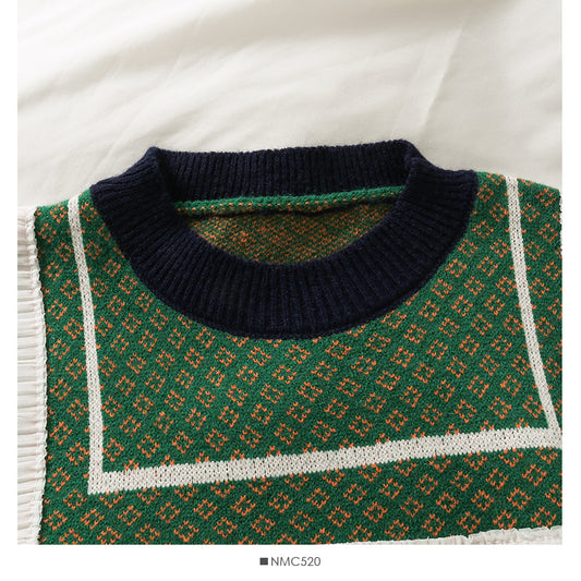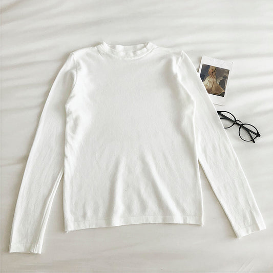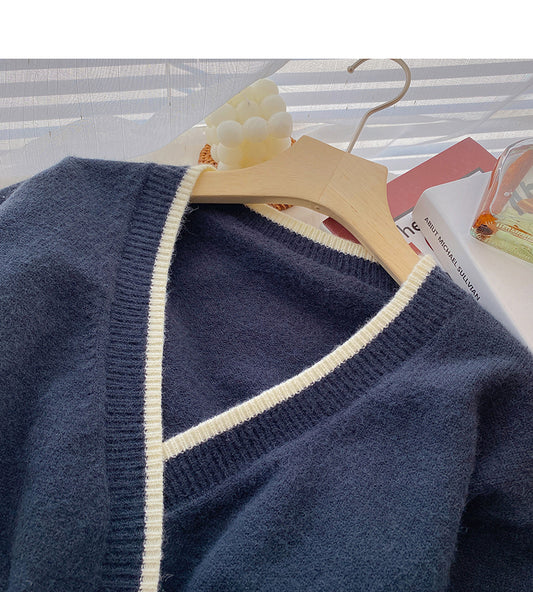 Korean retro fungus edge stitched round neck long sleeve Pullover Sweater 1979