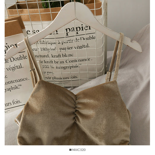 Korean retro golden velvet wrinkled tight short suspender dress 2711