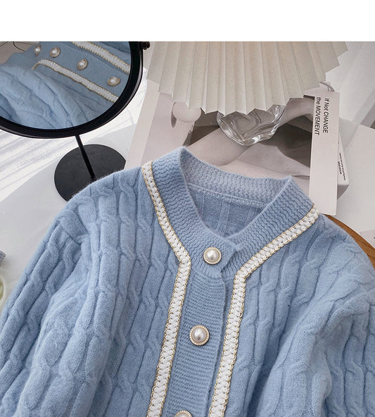 Korean retro bright silk striped single breasted cardigan women's sweater 2072