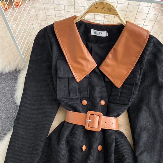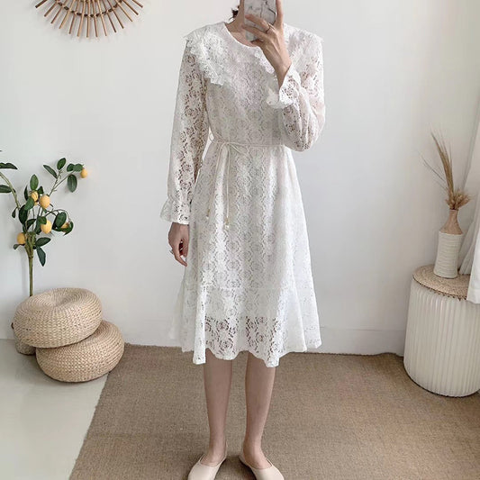 Lapel Chiffon Lace up gentle wind first love long skirt 3891