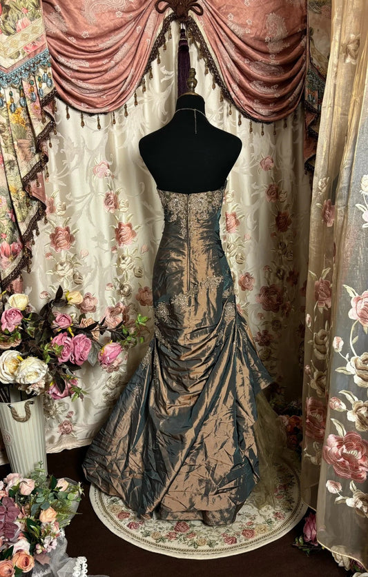🔮✨Iridescent deep purple and blue glossy sparkly stunning stunning unique stylish beautiful elegant delicate floral long satin ball gown evening dress birthday party dress prom dress gh3917