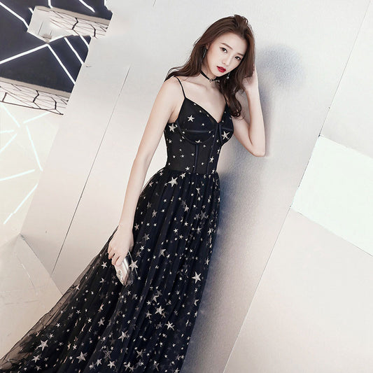 Black Shiny Elegant Fashion Tulle Long Sequin Ball Gown Evening Dress 8092