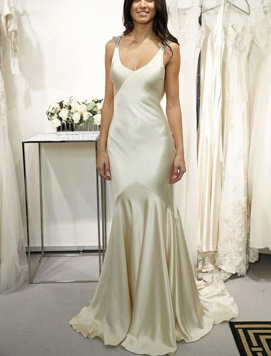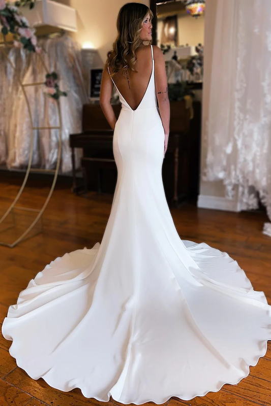 Simple White Mermaid Backless Boho Wedding Dress gh2635
