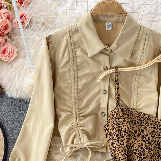 Slim leopard suspender dress two-piece set female 3243