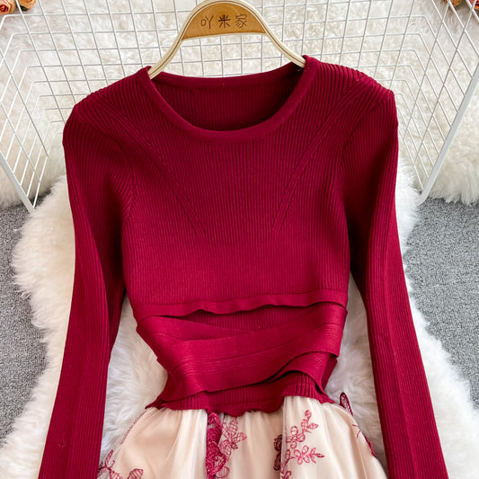 Lady temperament Long Sleeve Dress Lace Dress 3772