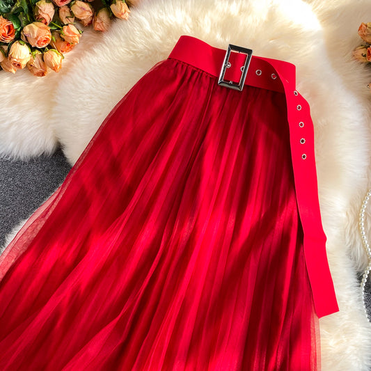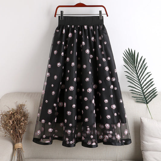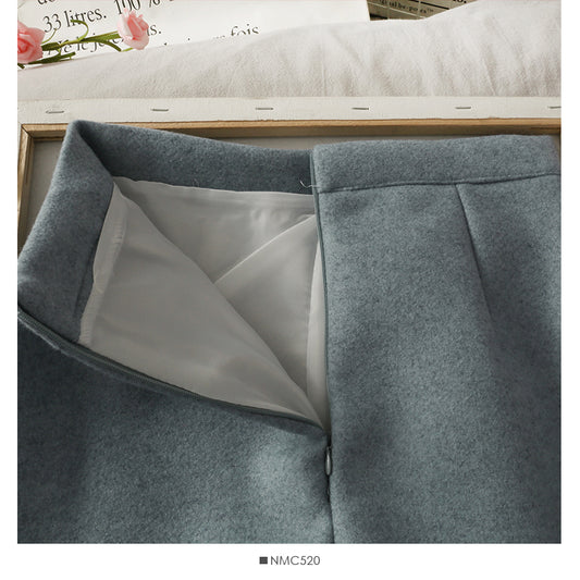 Sweet wind rose embroidered high waist thin woolen A-shaped skirt 2668