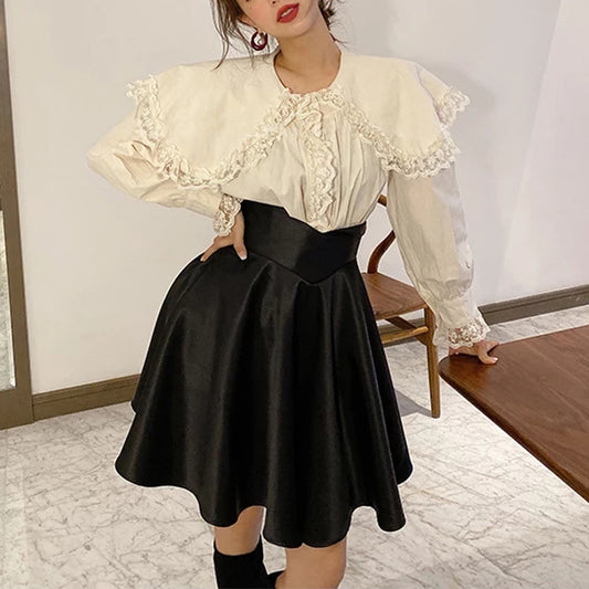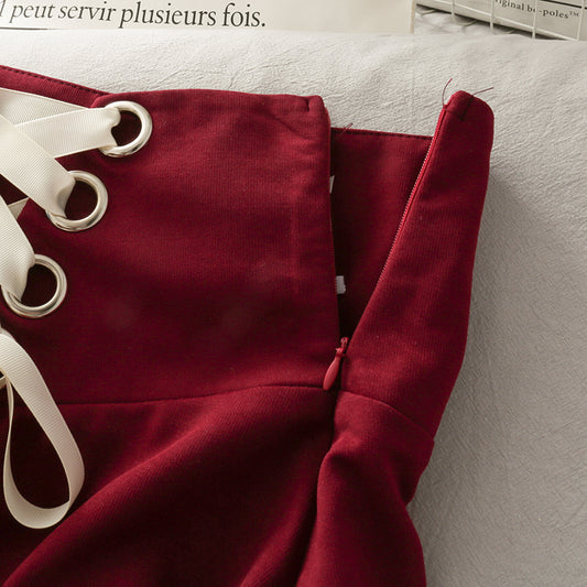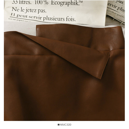 High waist slim wrap hip small leather skirt irregular solid color versatile skirt 2670