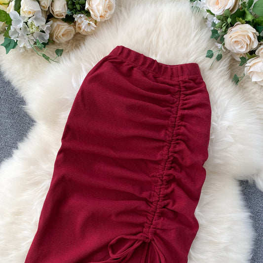 Slim and slim, medium and long split Knit Skirt, foreign style and versatile 2671