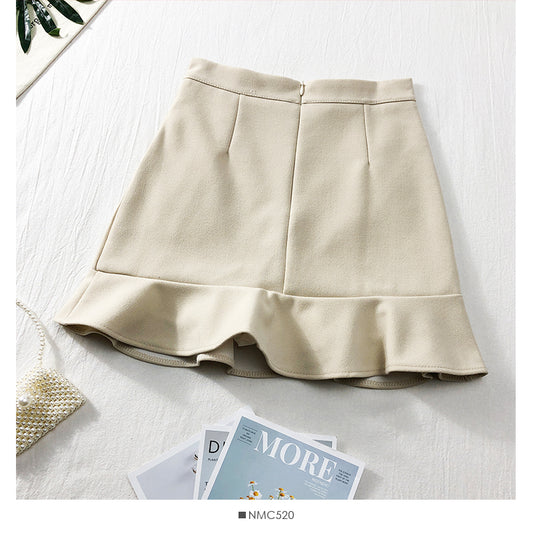 Korean Retro High Waist middle and long breasted skirt for women 2528