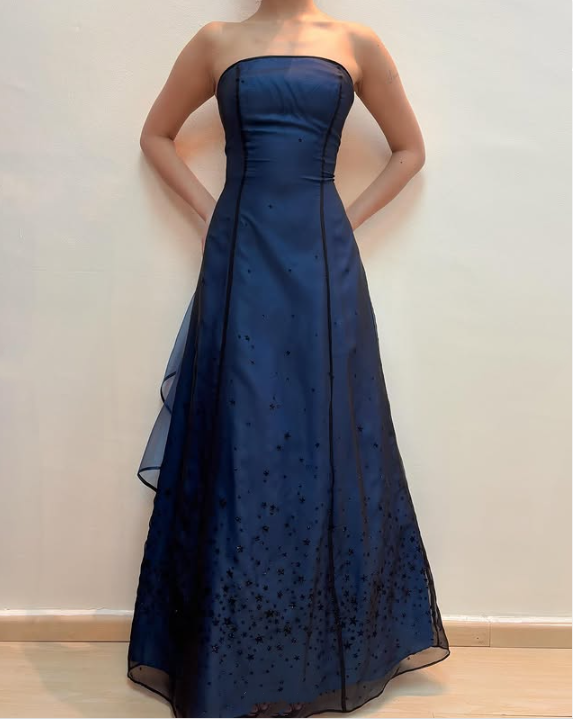 Blue Fashion Elegant Fairy Exquisite Stars Shiny Sequin Beading Spaghetti Straps Long Tulle Chiffon Satin Ball Gown Evening Dress Birthday Party Dress Prom Dress gh3761