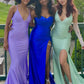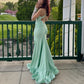 Green elegant fashion V-neck long satin floor-length train slit backless evening dress party dress prom dress graduation dress gh3919