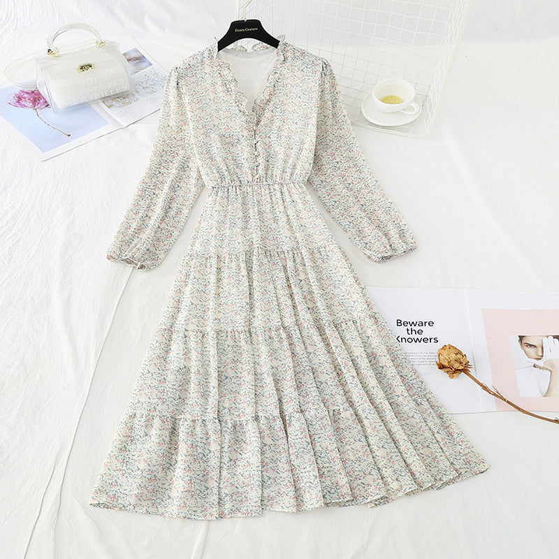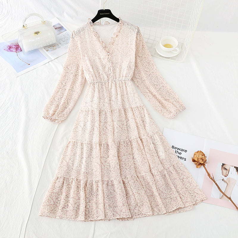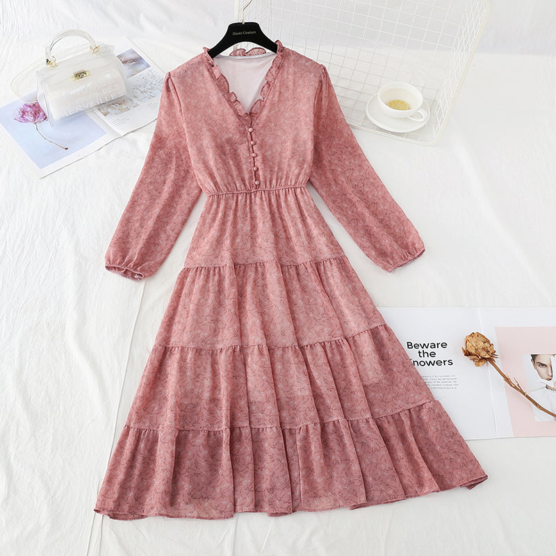 New Ruffle French Vintage chiffon skirt long 3862