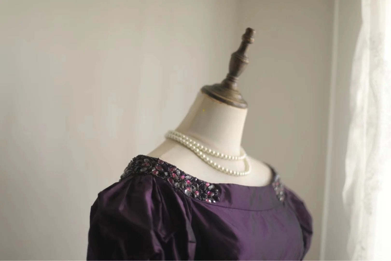 Purple Beaded Vintage Homecoming Dress Short Satin Prom Dress Evening Dress Graduation Dress gh4496