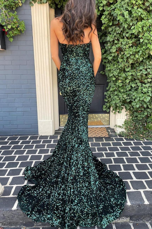 Robe de soirée élégante et sexy, vert émeraude/argent/orange/rose/jaune, bretelles spaghetti, paillettes, sirène, coupe slim, fente longue, longueur au sol, robe de bal, robe de soirée gh2238