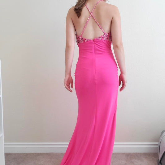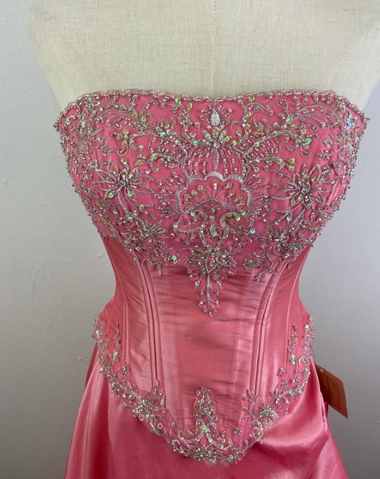 Robe de soirée longue en satin rose, magnifique, scintillante, exquise et délicate, avec perles, gh3584
