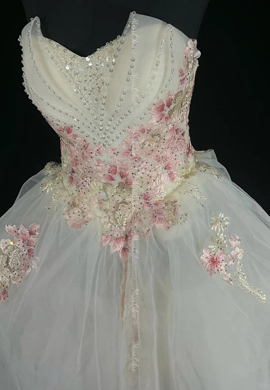 Robe de bal blanche rose à fleurs et perles brodées, courte/longue, jolie robe de soirée en tulle, robe de banquet, robe de mariée, robe de retour, gh4720