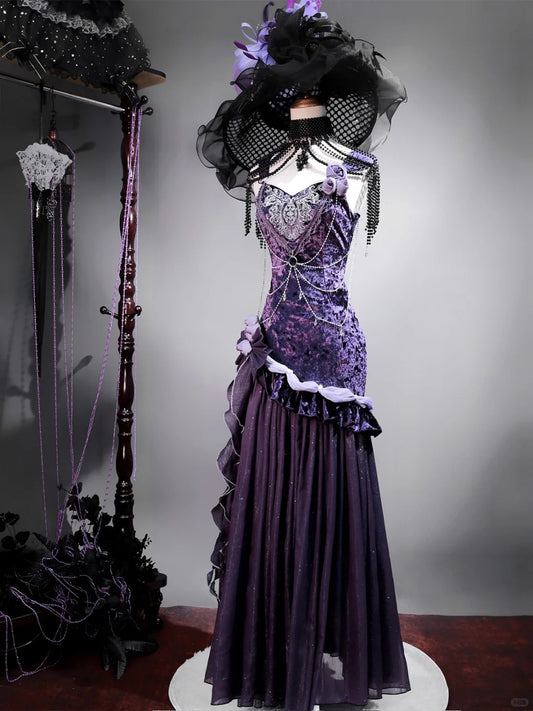 Girlhomeshops - Robe de soirée sirène longue en satin et tulle, magnifique robe de bal à fleurs violettes, exquise et perlée, gh5353