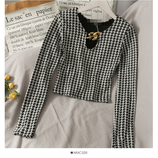 Pull à manches longues minces à nombril court exposé de la minorité française 1772