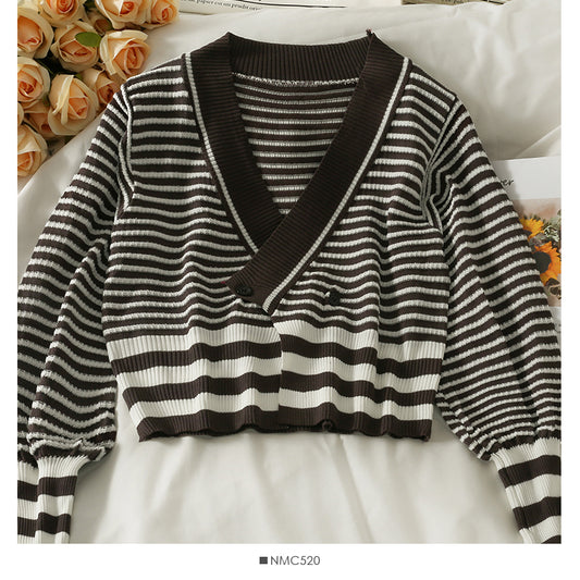 Pull court à rayures à deux boutons pour femme de la minorité française 2010
