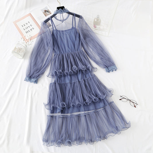 Jupe de poupée rétro de minorité française robe de gâteau en maille de dentelle de l'industrie lourde femme 2468