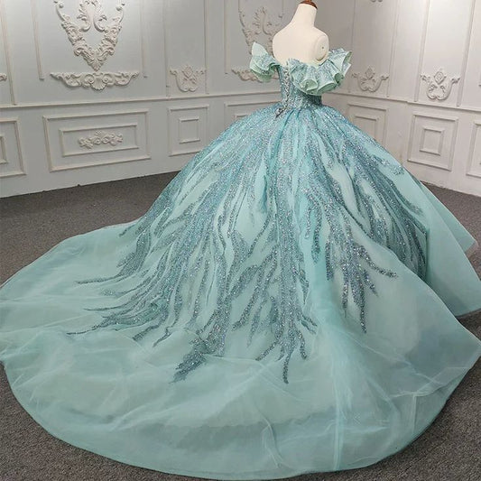 Robe de soirée longue en tulle perlé vert magnifique et brillant, robe de princesse longue au sol, robe gh3196