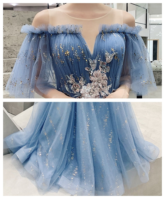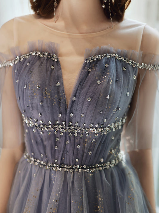 Robe de soirée longue en tulle bleu à paillettes 8322