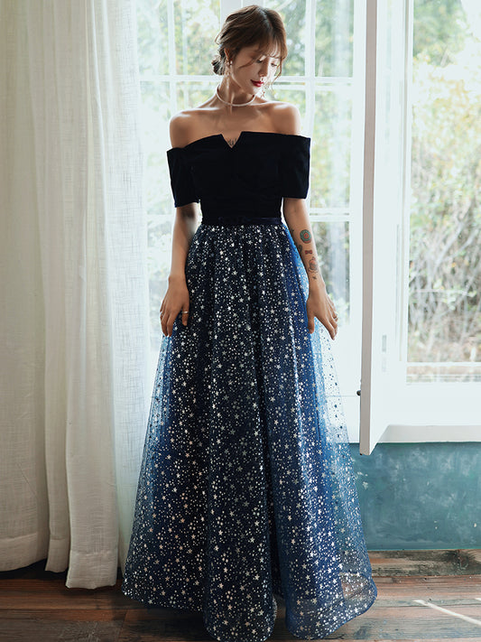 Robe de soirée longue en tulle de haute qualité, ligne A, 8288