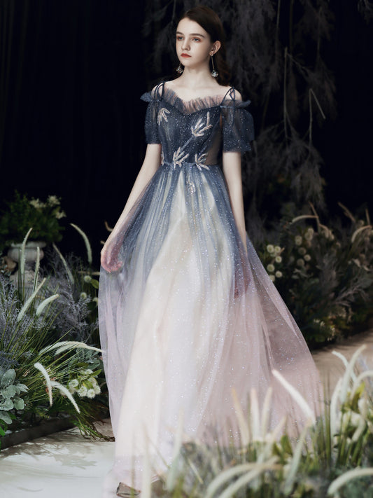 Robe de soirée longue en tulle pailleté à bretelles spaghetti brillantes de couleur bordeaux 8263