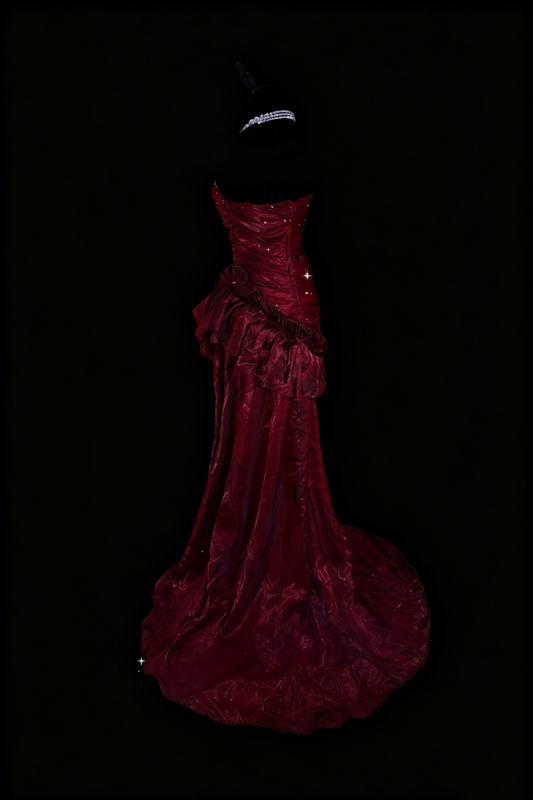 Robe de soirée bustier sans manches, style luxueux et sexy | Robe longue sirène en satin bordeaux scintillant, idéale pour un gala, un bal, des fiançailles ou un banquet (gh6421)