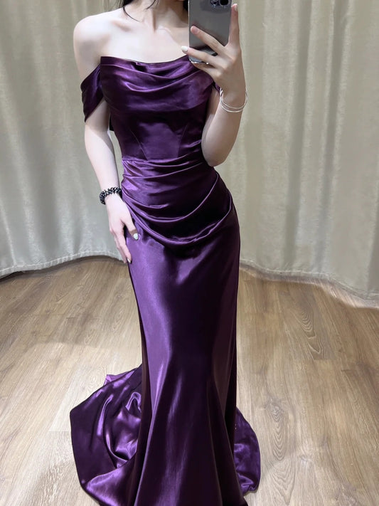 Robe de soirée longue et élégante en satin violet, coupe slim, longueur au sol, robe de bal, gh4203