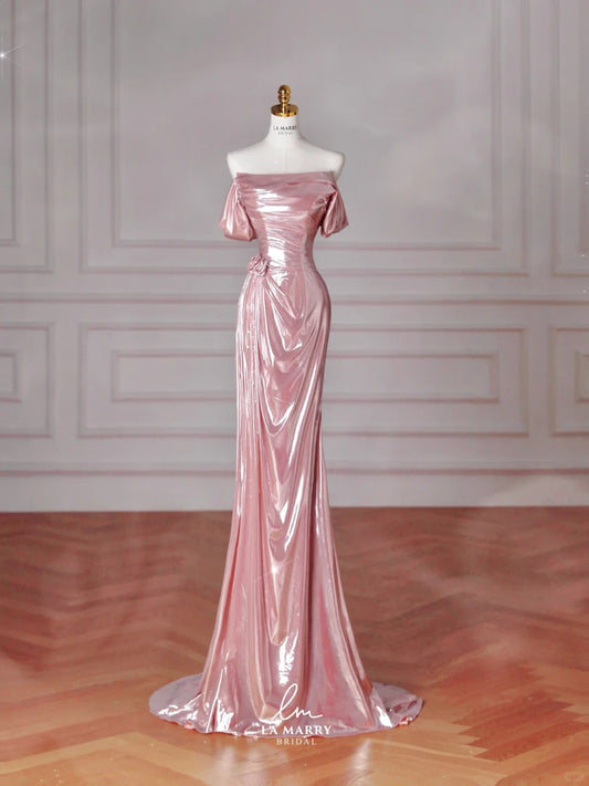 Robe de soirée sirène longue et élégante en satin rose, coupe slim, longueur au sol, robe de bal, gh4204