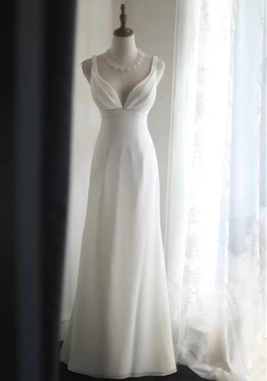 Girlhomeshops - Robe de mariée sirène blanche sans manches en mousseline de soie, coupe ajustée et minimaliste, longueur au sol (gh5831)