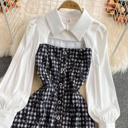 Robe patchwork à col chemise et découpe sur la poitrine, nouvelle conception 3119