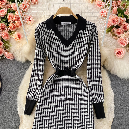 Robe pull mi-longue en tricot au tempérament de célébrité de petite taille 3108