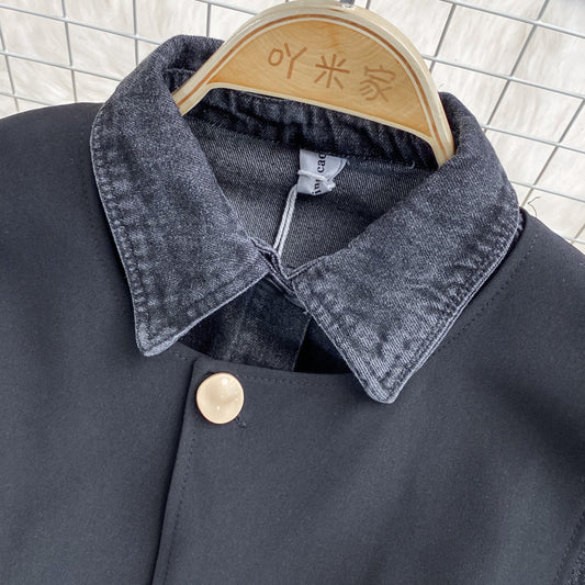 Robe en jean à taille fine, faux deux gilets, revers 3116