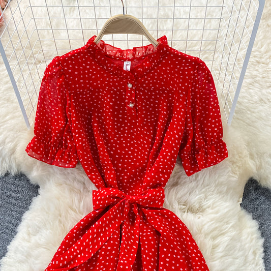 Robe en mousseline de soie à col montant slim, tempérament féminin, 3058