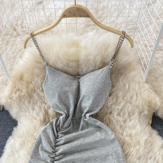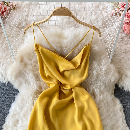 Robe en satin coupe vent douce dos ouvert tempérament mince 3063