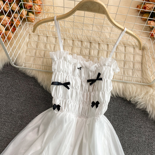 Robe de vacances fine à bretelles françaises blanche tempérament 3057