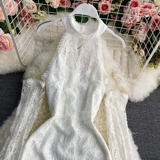 Jupe de plage sexy dos nu en dentelle fine avec bretelles pour vacances en bord de mer 3047
