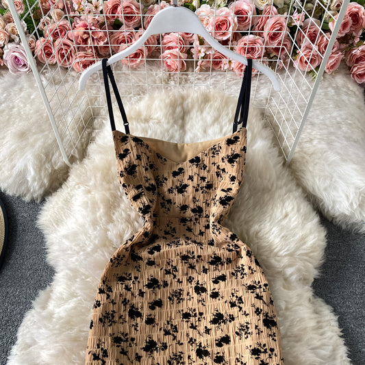 Robe fendue à bretelles en velours 3050