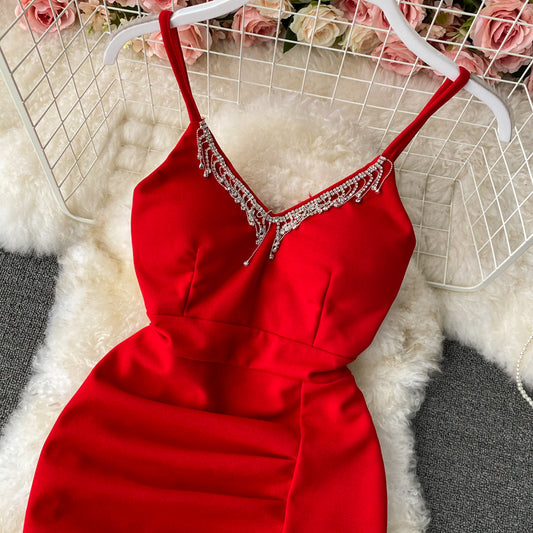 Robe moulante à col en V et jupe à bretelles 3048