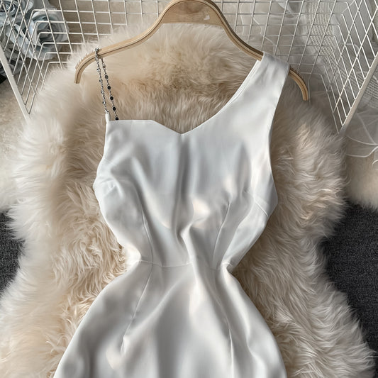Robe sexy à épaules dénudées et poitrine basse, col en diagonale, fente fine sur les hanches 3054